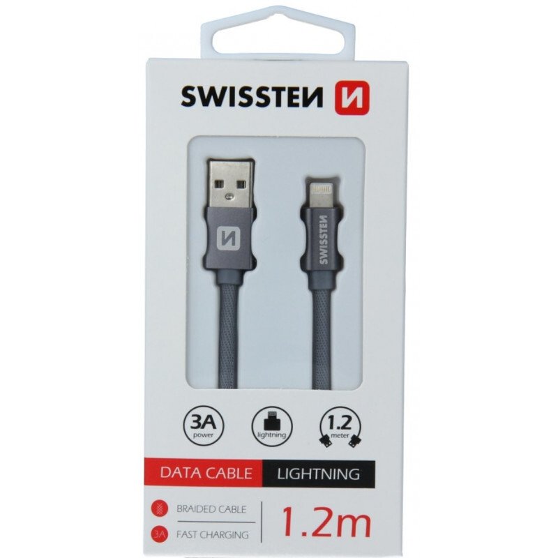 Cablu de date Swissten USB / Lightning cu împletitură textilă de înaltă calitate. Datorită lungimii sale de 1,2 m, este potrivită pentru o mașină, un birou într-un birou sau o noptieră. Cablul este intarit si astfel transmite mai mult curent (pana la 3A) si poate face fata transferului rapid de date de 480 Mb/s.